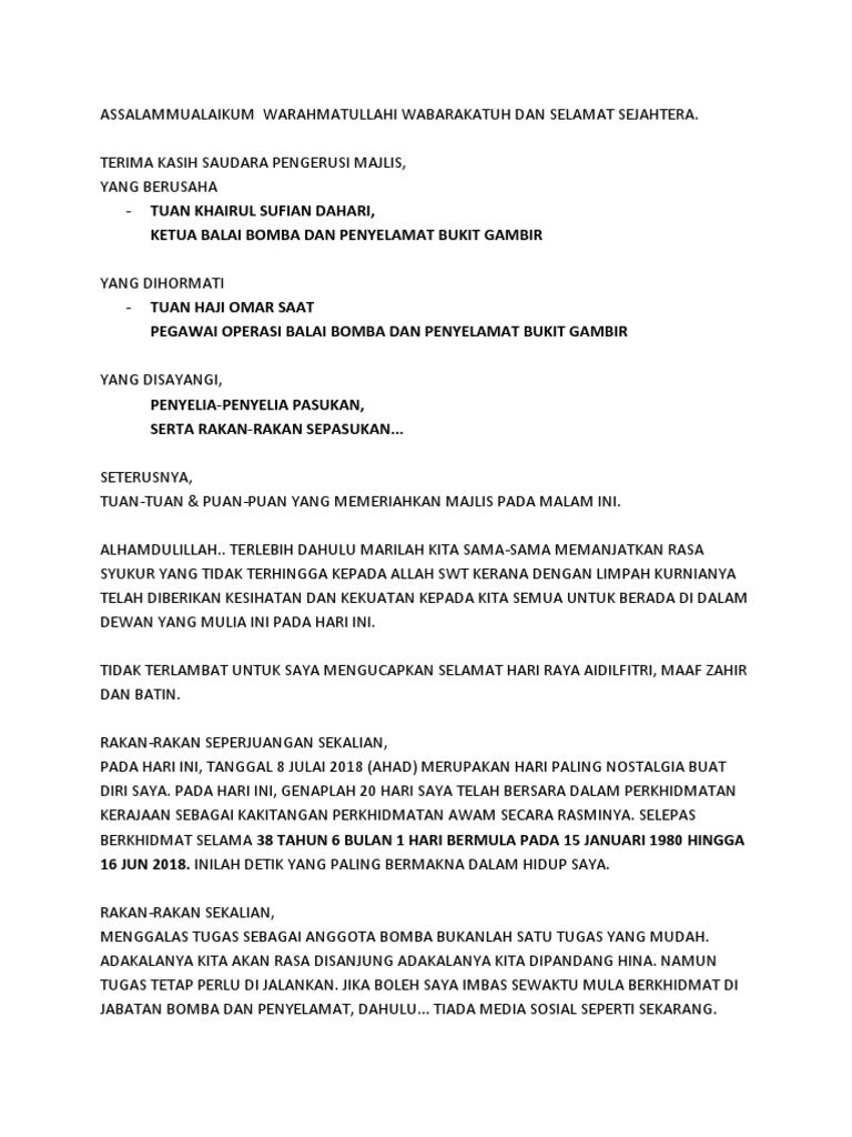 Related : Contoh Teks Ucapan Persaraan Kakitangan Awam / Assalammualaikum w.h.t dan salam sejahtera… yang saya hormati tuan pengarah timbalan pengarah, yang dipertua majlis perwakilan pelajar, pensyarah pensyarah kanan pensyarah akademik staf sokongan dan para pelajar yang saya kasihi sekelian..