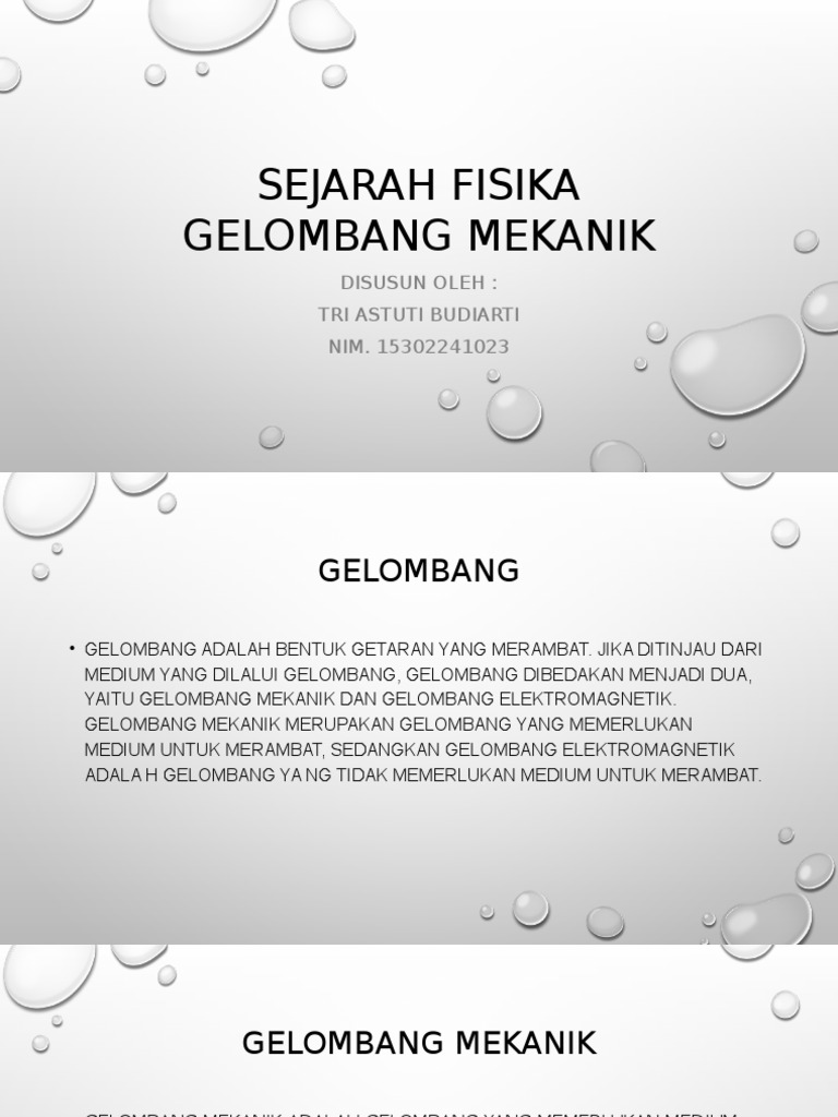 Gelombang mekanik adalah suatu gelombang yang di perambatannya itu memerlukan sebuah medium, yang berfungsi untuk nah jadi gelombang mekanik itu memang memerlukan sebuah medium, dan sangatlah berbeda dengan gelombang elektromagnetik yang tidak memerlukan. • gelombang adalah bentuk gangguan atau getaran yang menjalar. • terbagi menjadi dua yaitu gelombang mekanik dan gelombang elektromagnetik. Gelombang elektromagnetik adalah gelombang yang dalam proses perambatannya tidak memerlukan medium (zat perantara). Gelombang ini tidak memerlukan medium dalam perambatannya.