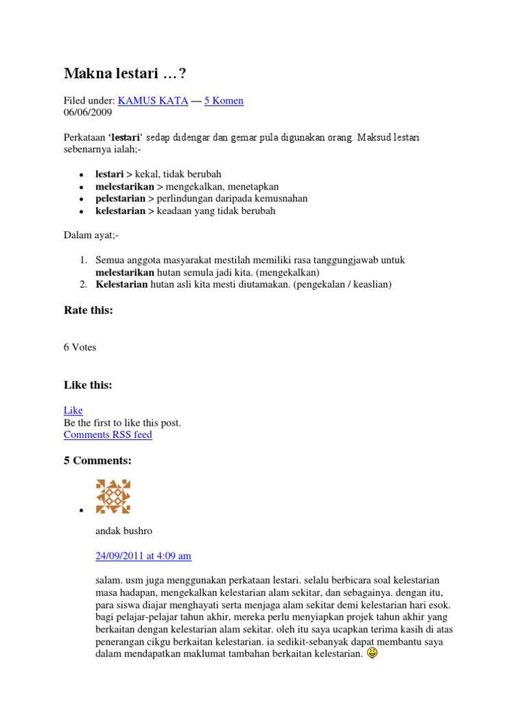 Maksud Alam Sekitar Kamus Dewan You Ve Reached The End Of Your Free Preview from i0.wp.com Dalam kamus dewan edisi keempat, etimologi ditakrifkan sebagai cabang ilmu linguistik yang mengkaji asal usul dan perkembangan sesuatu kata manakala perkataan malaikat membawa maksud sejenis makhluk yang diciptakan allah daripada cahaya. Yb dato' sri tuan ibrahim bin tuan man dipilih sebagai salah seorang daripada 7 menteri alam sekitar terbaik di asia oleh majalah asia business info. Contextual translation of maksud sikap dalam kamus dewan into english. Keadaan (kondisi, kekuatan) sekitar yang mempengaruhi perkembangan dan tingkah laku organisme Bahan untuk membuat pakan alterative untuk diberikan kepada lele dapat dicari atau diperoleh di alam. Dewan muslimat pas kawasan pengerang. Kementerian sumber asli dan alam sekitar sedang mengubal rang undang undang akta kualiti alam sekeliling 1974 bagi. Alam sekitar dalam bahasa inggeris:
